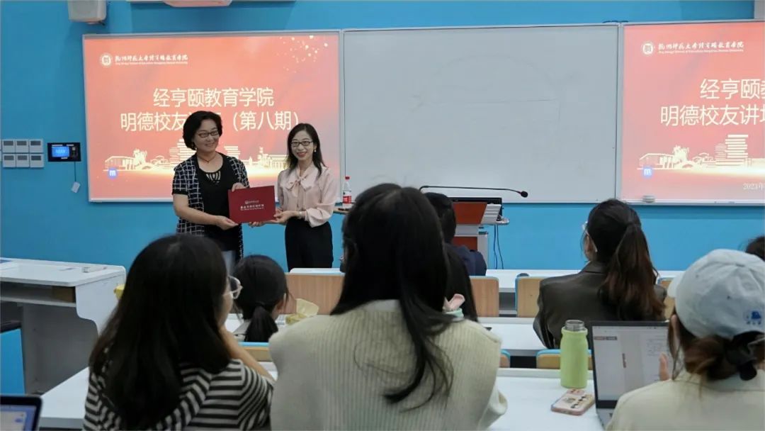 讲座开始前,党委副书记沈嫣为张丽华老师颁发了“校友导师引领计划”讲师团聘书。