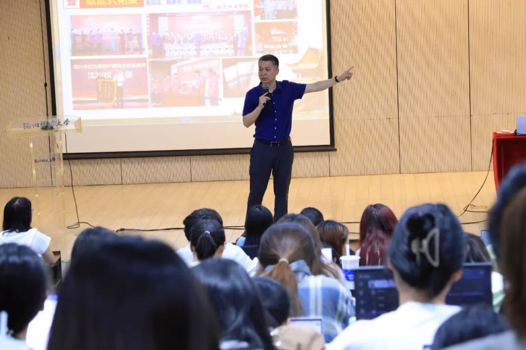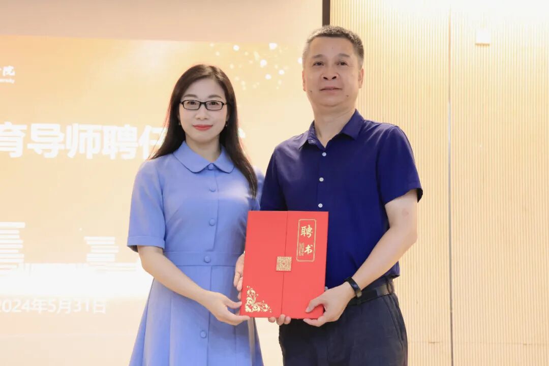 讲座正式开始之前,举行了简短而隆重的劳动教育导师聘任仪式,我院党委副书记沈嫣代表学院正式聘任沈民权校友为劳动教育导师。