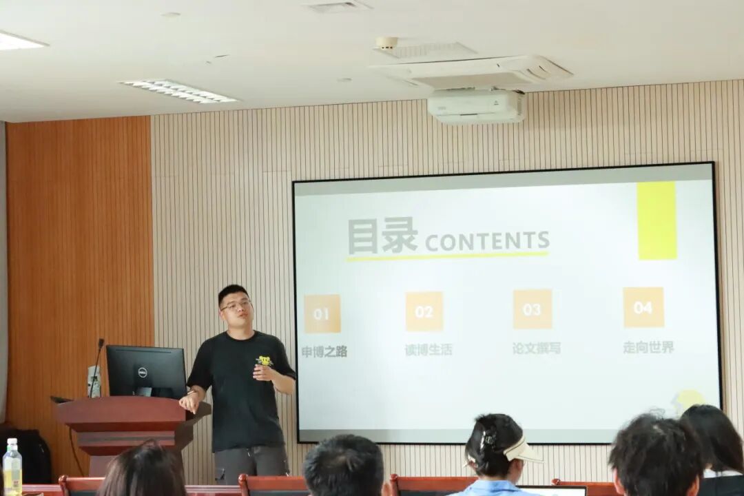 讲座伊始,周伟杰校友向同学们阐述了他的坎坷申博之路,从教育学专业格局、申博过程中遇到的问题、日本院校的相关规章制度、如何做好思想准备以及当下遇到的困境等方面论证了纵使申博之路布满荆棘,也要奋勇向前,要坚信读博生活定会多彩斑斓。通过周伟杰校友的经历分享,同学们领略到了异国读博的别样风采。