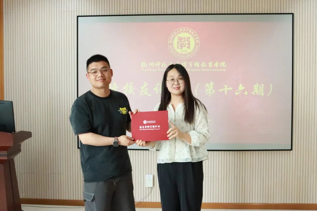 我院辅导员陈珂为周伟杰校友颁发了“校友导师引领计划”讲师团聘书。