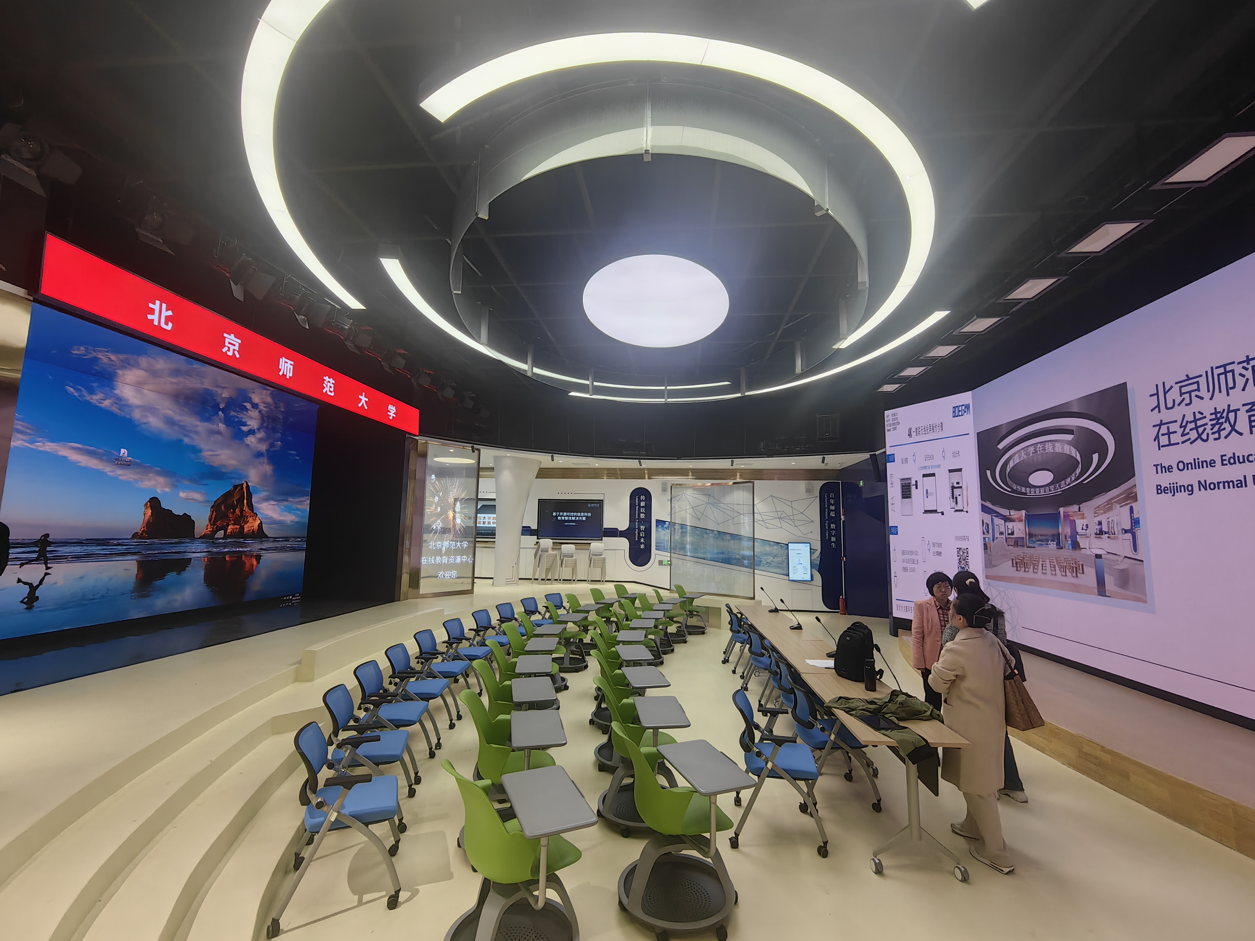 座谈期间,双方围绕人工智能时代教育技术学专业的转型升级、课程体系优化、跨学科人才培养路径、师资队伍建设等关键议题展开深入研讨,交换了宝贵意见。座谈结束后,在郑院长和吕老师的陪同下,调研团队实地参观了学院高规格打造的北京师范大学在线教育资源中心,详细了解了中心在数字教育资源研发、在线教学平台建设、智慧教学环境搭建等方面的先进经验与技术应用成果。