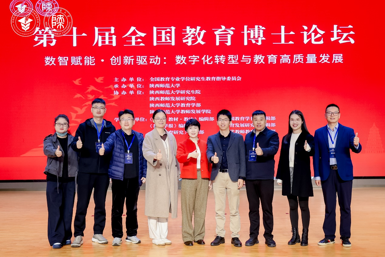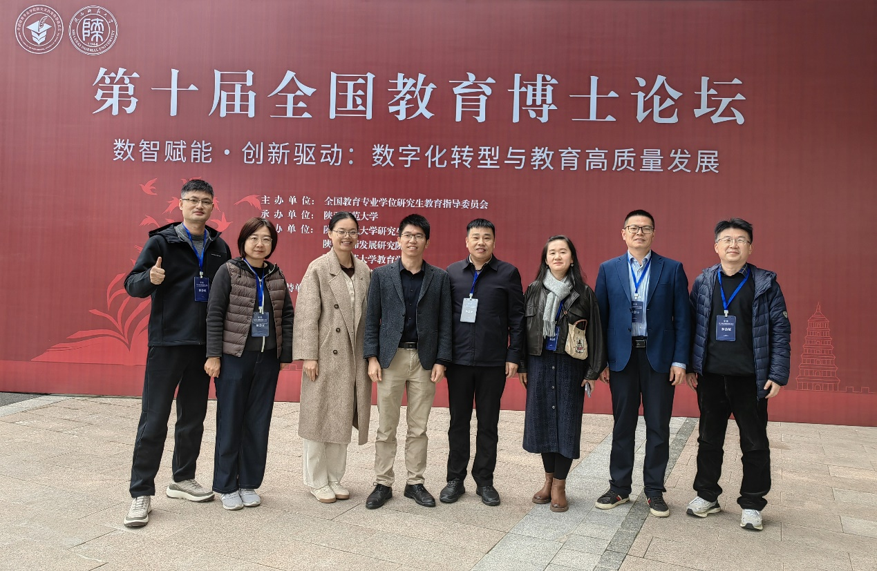 2025年10月31日至11月2日,第十届全国教育博士论坛在陕西师范大学举行。聚焦主题“数智赋能·创新驱动:数字化转型与教育高质量发展”,共话新时代教育博士高质量发展。来自全国四十多所高校的450余名教育学科领域专家、高校校领导、研究生院院长和教育博士等参加论坛。我院学术副院长程建坤、我院教育博士研究生刘思硕、徐曼婷、柏忠贤、孙茜、陈晓玲、傅国光、曹潇月、宋小兵等9人赴西安参会,与来自全国的专家学者进行交流探讨。