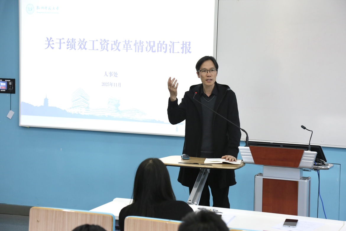 随后,院长严从根发表讲话。他深入分析了当前学校和学院发展面临的新形势、新任务,并就绩效工资实施办法制定的背景、必要性与战略重要性进行了详细说明。严院长指出,一套科学、合理、导向清晰的绩效分配制度,是激发办学活力、调动教职工积极性和创造性、助推学院各项事业高质量发展的关键机制保障。他希望全体代表能够深刻领会改革精神,统一思想,凝聚共识,共同为学院的未来发展贡献力量。