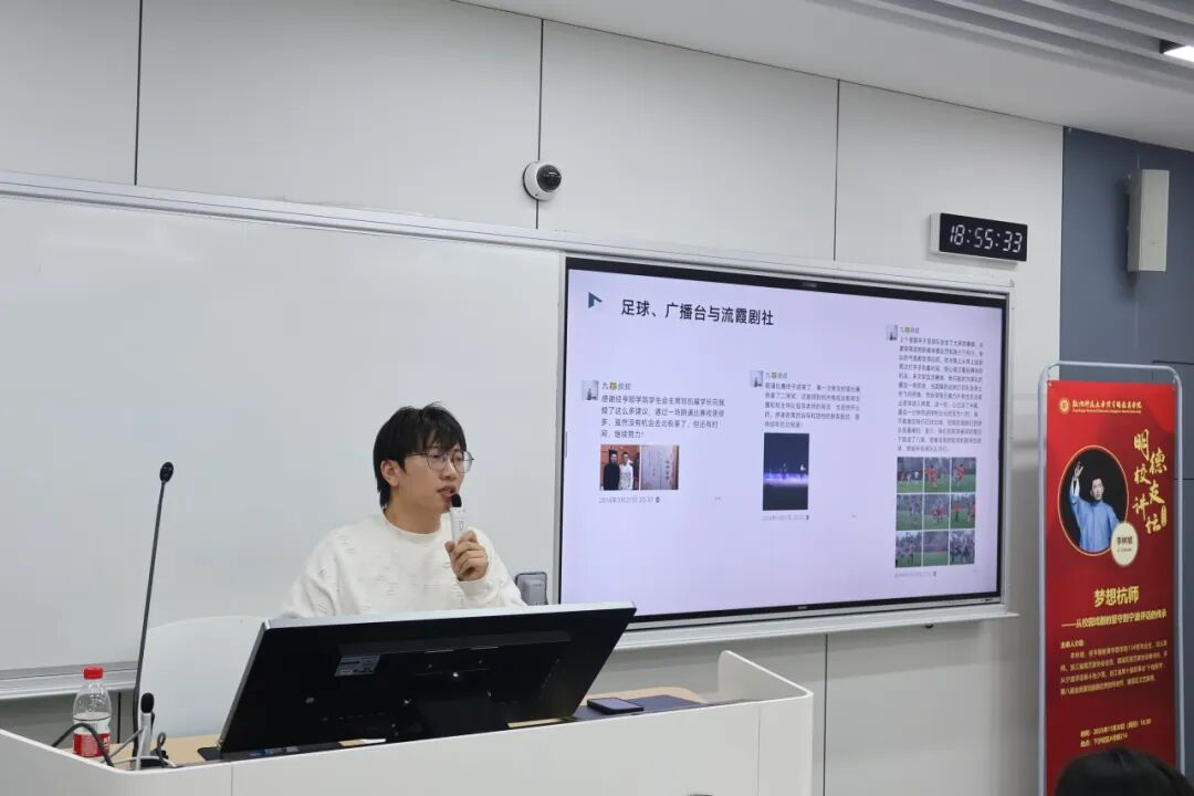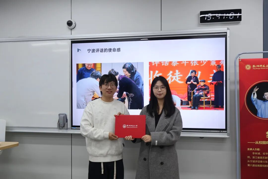 11月30日晚,我院“明德校友讲坛”第二十二期在下沙校区A-214顺利举行。我院学前134班毕业生李林虓学长给同学们带来了一场主题为“梦想杭师——从校园戏剧的坚守到宁波评话的传承”的讲座。本次讲座由辅导员高梓凌主持。