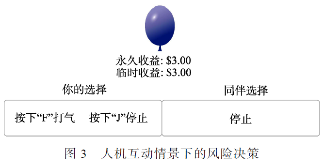 随着人工智能时代的到来,人工智能广泛应用于涉及风险决策的领域,如自动驾驶、医疗决策、投资决策等。在许多场景中,人类将与人工智能联合行动、共同决策。人工智能充当的角色不再仅是工具,而成为人类的“助攻”。例如,在多人在线战斗竞技游戏比赛中,人工智能 “助攻” 能够快速分析游戏地图中的各种信息,然后根据这些信息做出决策,如提醒人类何时躲避敌方的偷袭。同时,人类玩家也会向人工智能 “助攻” 传达自己的意图,比如,想要进攻某一路线。人工智能 “助攻” 就能结合自己分析的数据,提出更合理的进攻策略,人类玩家和人工智能 “助攻” 相互配合,共同提高比赛胜率。这种人工智能与人密切合作,以完成联合任务的过程,即人机合作(Lei & Rau, 2021)。在这种人机合作中,人工智能是否会助长人类的冒险行为呢?进一步地,人工智能可能会使个体的自我增强,在人机合作中知觉到的主体责任更强。那么,人工智能是否会通过提升个体感知到的主体责任,进而助长其冒险行为呢?目前这些问题都还没有答案,亟待澄清。研究人工智能对个体冒险行为的影响及其中介机制有助于更全面地了解人机合作中人工智能对人类行为的影响,包括可能的消极影响,同时为更有效地人机合作决策提供相应的建议。因此,本研究旨在比较“人-机”合作和“人-人”合作对个体风险决策的影响,并探究个人知觉到的主体责任如何发挥作用。