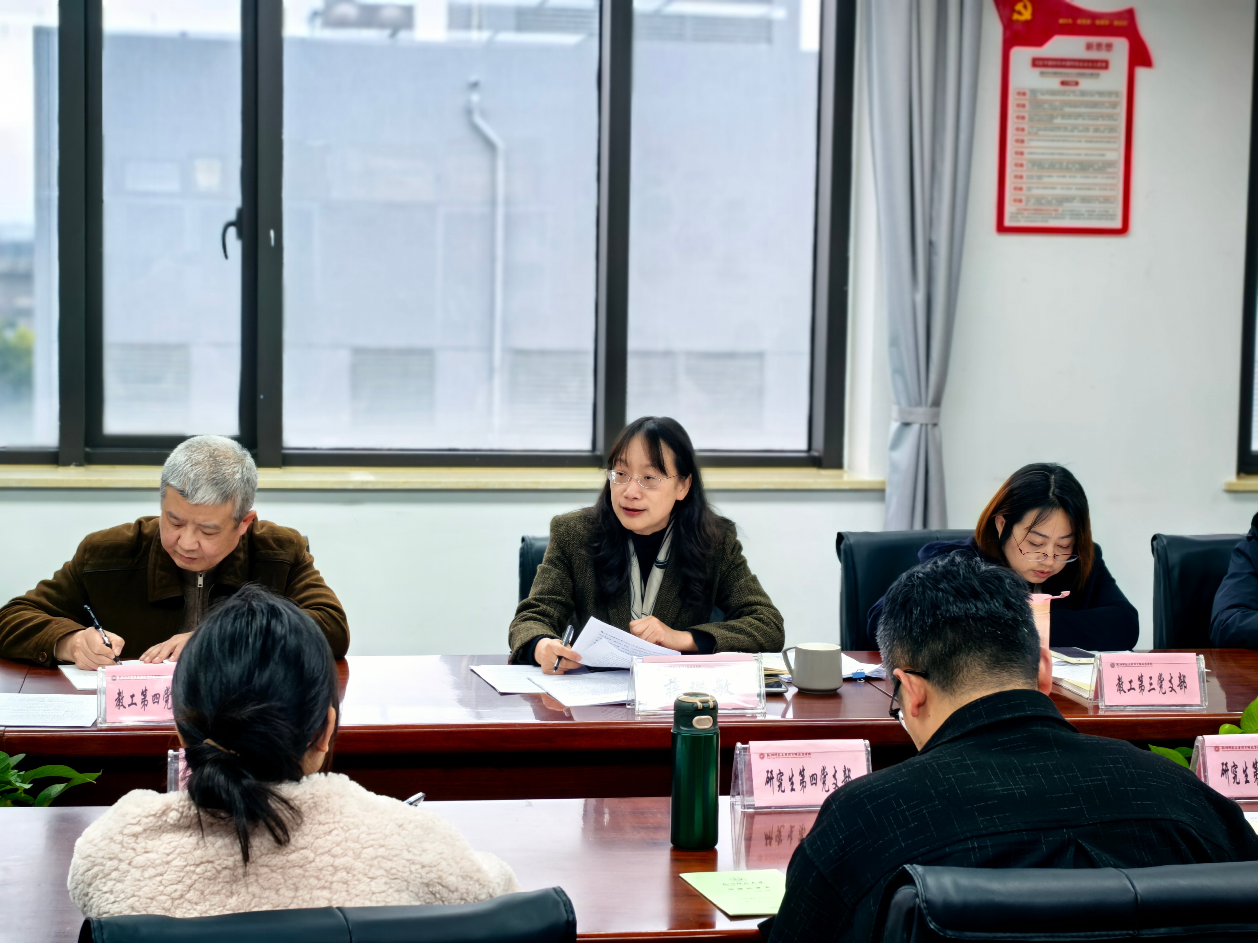 会议首先传达学习了近期学校传达学校全面从严治党暨作风建设警示教育大会、安全稳定工作会议精神。2026年是学校事业高质量发展极为重要的一年。会议强调,各党支部要将学习贯彻上级精神作为首要政治任务,通过“三会一课”、主题党日等形式,组织党员师生深学细悟,切实把思想和行动统一到学校党委工作要求上来,全面落实筑牢忠诚、求真务实、勇于担当、守正创新、团结奋进、坚守廉洁六个方面工作要求,不断增强政治判断力、政治领悟力、政治执行力,深化作风建设,弘扬“六干”作风,确保学校“十五五”高质量开局起步。