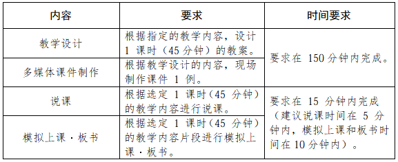 根据《杭州师范大学全日制教育硕士专业学位研究生教师合格水平达标考核评价标准》,达标测试内容为四项:教学设计、多媒体课件制作、说课、模拟上课·板书。各学科专业可根据专业特点作微调。