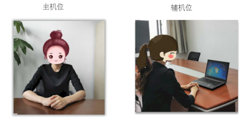 考试过程要求:复试前按要求安装调试好设备。考生端两台设备开启摄像头,主机位摄像头对准考生本人,辅机位摄像头从考生后方成45°拍摄。要保证考生考试屏幕及考生上半身能清晰地被复试专家组看到。见附图: