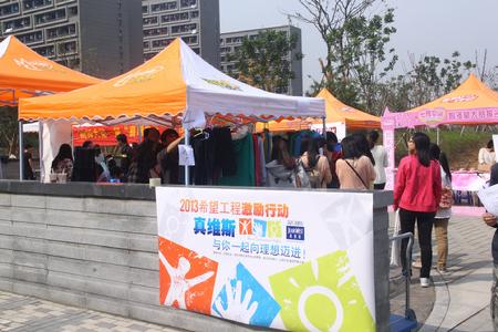 本次活动是2013希望工程激励行动,由真维斯商家大力赞助义卖的衣服按原价的四折出售,吸引了很多同学前来挑选。到了午饭的时间,更多的同学参与到这场爱心义卖的活动中。一场买与卖的好戏在食堂门前精彩上演。同学们积极参与的热情让全场升温,相信他们的热情也会温暖那些需要帮助的孩子们,让他们温暖过冬。在同学们的支持和配合下,此次义卖活动取得了圆满成功。